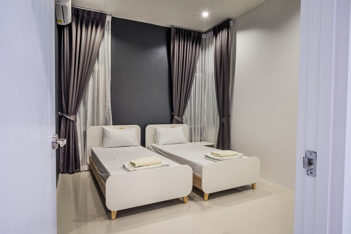 - บ้านพักมีเตียง 5 ฟุต 2 เตียง, เตียง 3 ฟุต 2 เตียง และ ที่นอนเสริม 6 ที่
